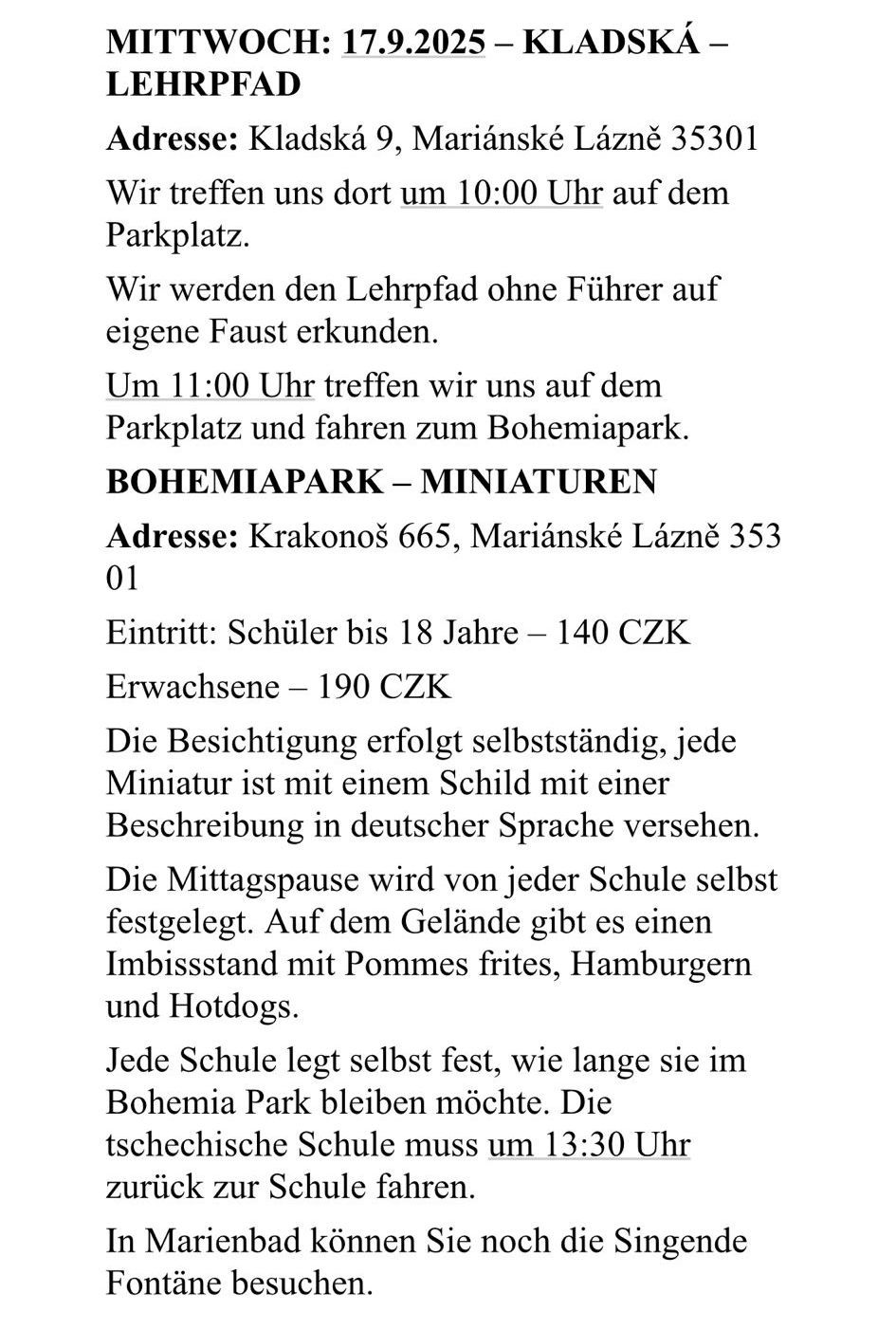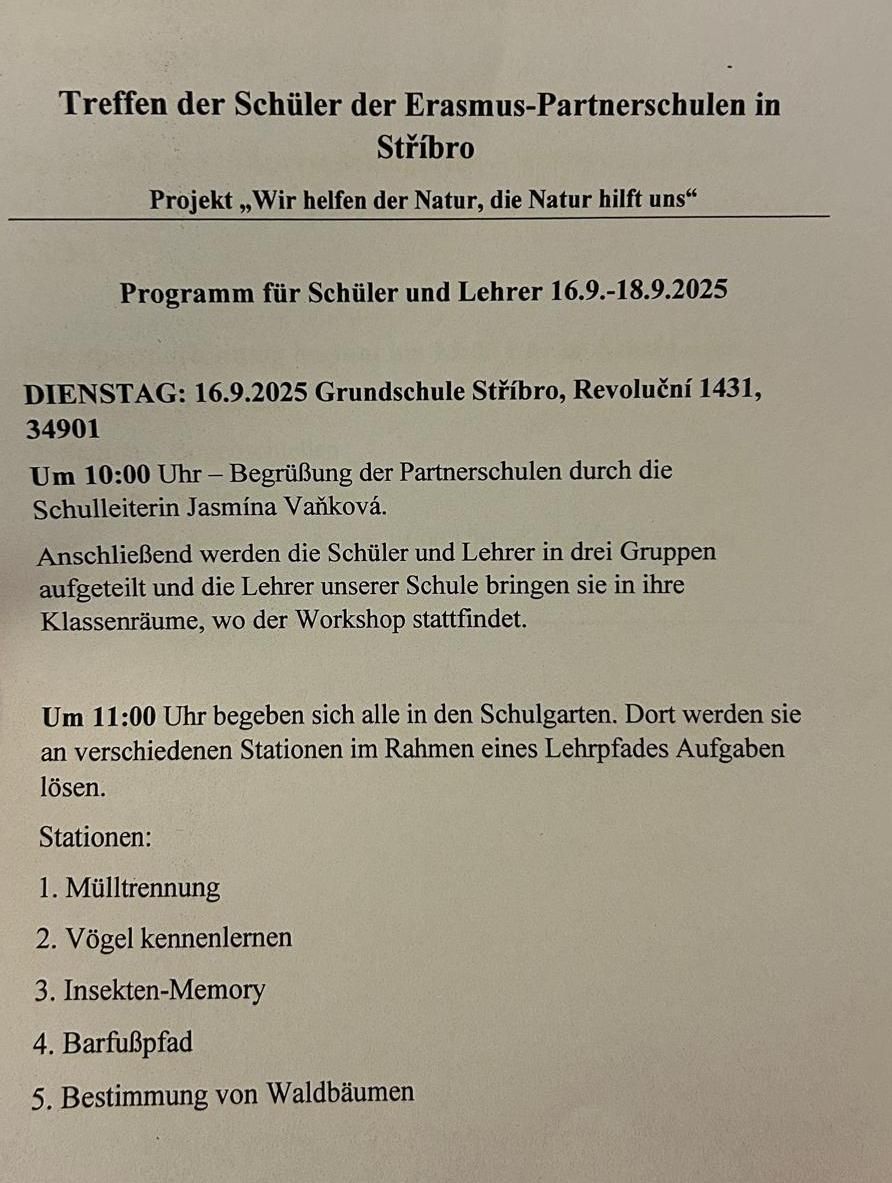 Programm der Mobilität vom: